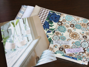 丁寧にラッピングされたカットクロスと、素敵なポストカード。