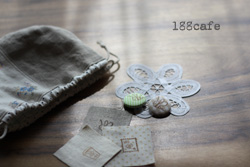 写真を撮った後で、一つだけ、さくらんぼさんのハチ君切手はんこのタグを使ったお薬きんちゃくを作りました。