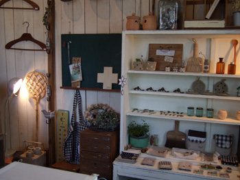 目印のブルーのドアの中には、素敵な物がたくさん!