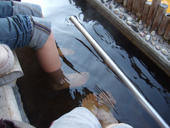 ここの足湯は、とても熱いのですが、じっくり入っていると、体がぽかぽか温まって、気持ちいいのです。