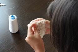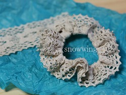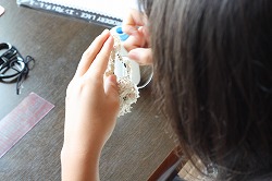 私に、みなさんが楽しんでもらえる話ができるわけがないので、簡単なものを作りながら、お話ができたらと、レースのシュシュ作りをしました。