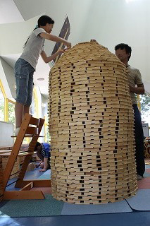 このあと、夫が慎重に、積み木をはずして、入り口を作ります。